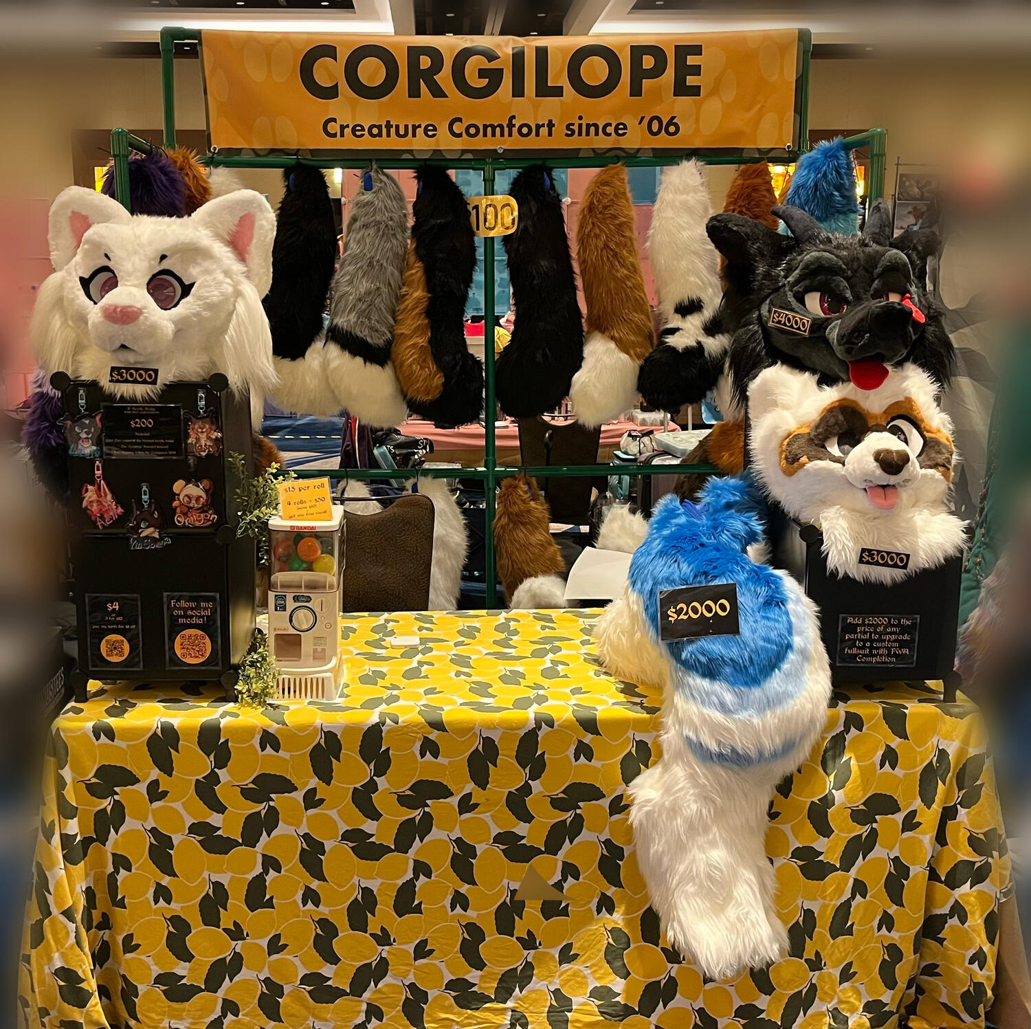 Howdy! Click "Portfolio" or scroll past the buttons below to view the items I offer at conventions or click "Table Display" to view an offsite gallery of my past table displays (the display to the right is my typical setup).I'm a single artist business based out of Philadelphia. I've been selling at furry conventions for over 15 years and my primary goal when selling at conventions is to provide a convenient jumping off point for character creation so that new and old furries alike can find an image that suits them!Previous Successful Events Include: